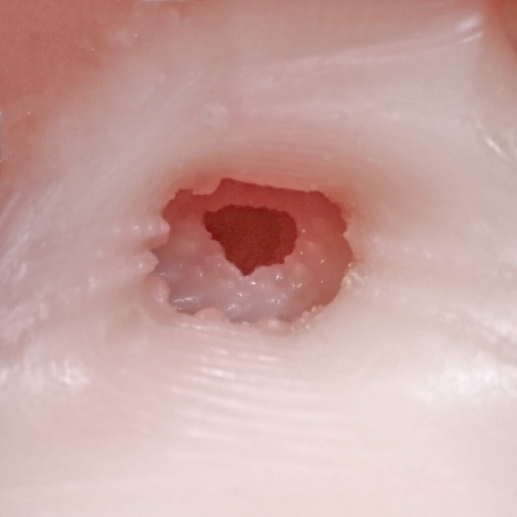 來談談通道,一開始進去的空間很大,剛好就是差不多微微貼著龜頭的程度,然後大概就是連根部插進去一點點時就會先有一段感覺夾緊,再往內部深入大概根部插入一半後則會有更夾緊的突破感。